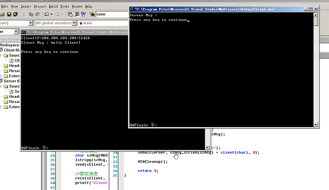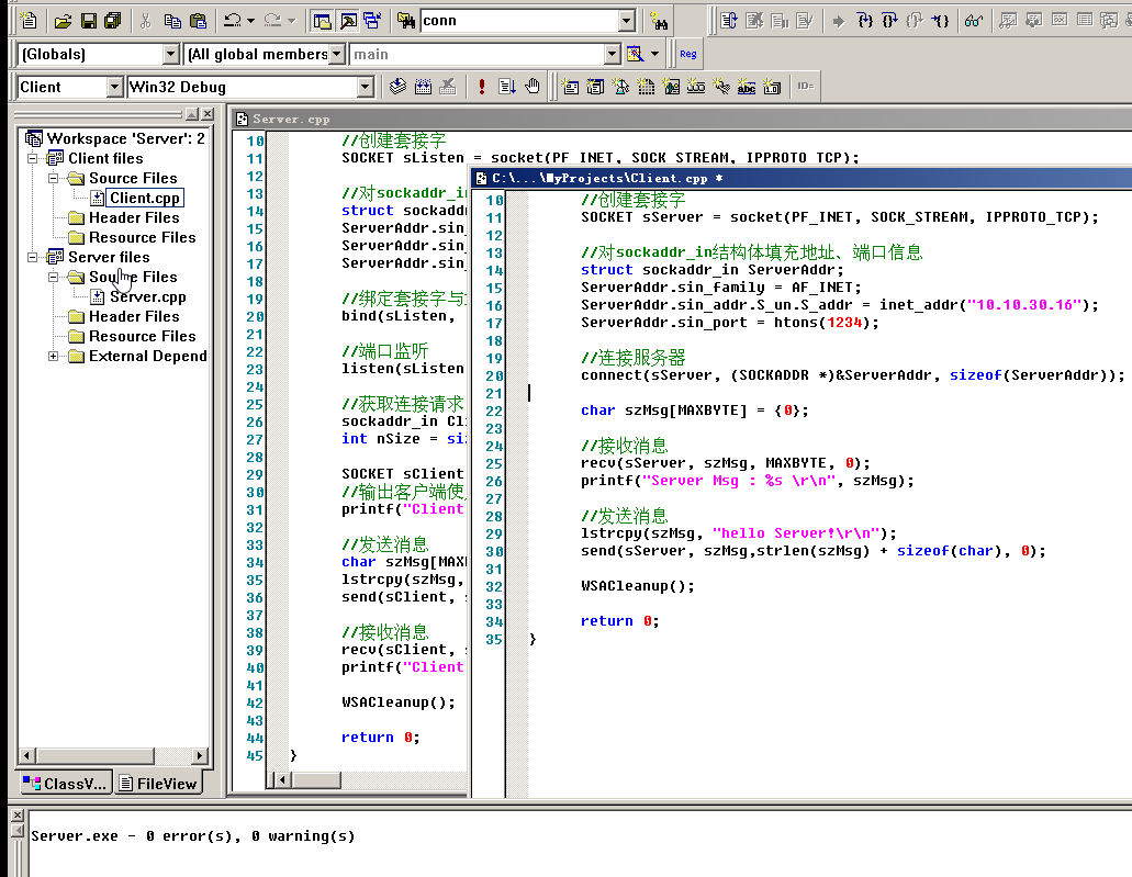 这样一个服务器端的程序就完成了。为了起到演示的作用,不让多余的东西影响流程的清晰化,这里没有对API函数的返回值进行判断。在实际的开发中,为了保证程序的健壮性,应该对各函数的返回值进行判断。